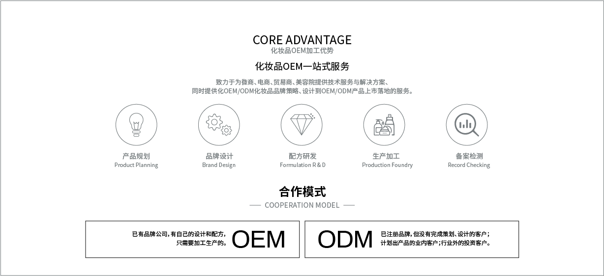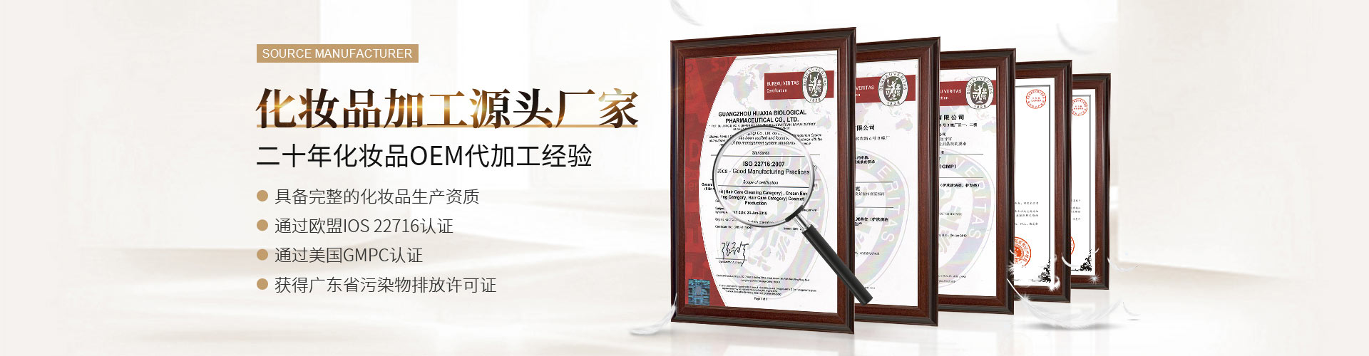 公司始創(chuàng)建于2012年,經(jīng)過八年的健康發(fā)展,已經(jīng)成為可以從事妝字號、消字號、械字號等系列產(chǎn)品生產(chǎn)加工的大型企業(yè)。企業(yè)坐落在美麗的廣州白云區(qū)鐘樓潭鎮(zhèn),擁有面積超過15,000平方米的生產(chǎn)廠房。廠房寬敞明亮,設(shè)計科學(xué)新進(jìn),擁有十萬級的生產(chǎn)車間,局部環(huán)境可以達(dá)到一萬級別;設(shè)備多采用新進(jìn)的進(jìn)口設(shè)備,自動化程度非常高,擁有一流的生產(chǎn)設(shè)施。工廠同時通過了ISO22716和GMCP質(zhì)量管理認(rèn)證,擁有一流的質(zhì)量管理體系。廠